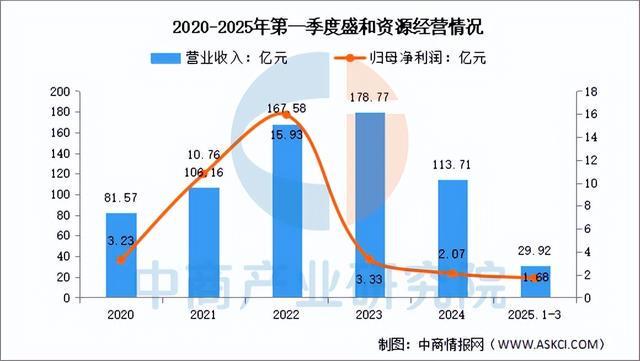 2025年第一季度实现营业收入29.92亿元,同比增长3.67%;实现归母净利润1.68亿元,同比增长177.78%。2024年主营产品包括稀土金属、稀土氧化物、稀土精矿(含独居石),营收分别占整体的53.87%、29.23%、7.00%。