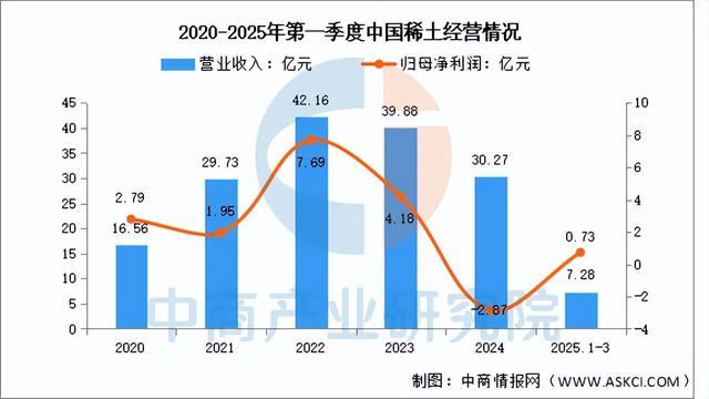 2025年第一季度实现营业收入15.06亿元,同比下降14.09%;实现归母净利润0.47亿元,同比增长115.46%。2024年稀土及相关产品营收占比达31.25%。