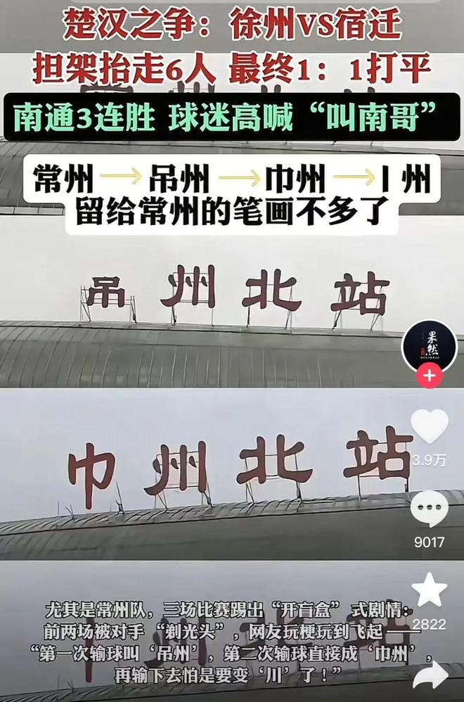 官方说苏超是业余足球爱好者之间的比拼,只有常州信了,全员业余球员,连主场都选在了大学体育场。常州先输连云港,再输南通,最新又输扬州,排名垫底。节节败退,常州从“吊州”变为“巾州”,再到“1州”,留给中国队的时间不多了,留给常州的笔画不多了。