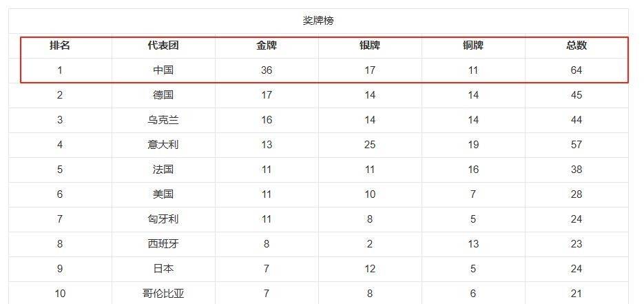 成都世运会金牌榜:美国11枚日本7枚中国令人意外